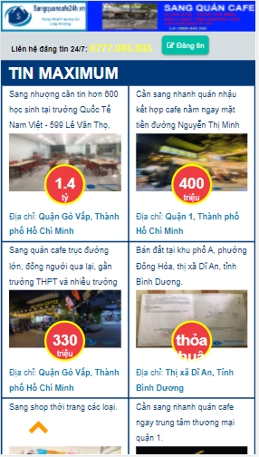 Theo ghi nhận của chúng tôi, hàng ngày có đến hàng trăm tin sang quán bao gồm sang nhượng các mô hình kinh doanh khác nhau như quán cafe, nhà hàng, shop thời trang, spa thẩm mỹ viện... Bạn cần lựa chọn những kênh quảng cáo uy tín và hiệu quả nhanh.